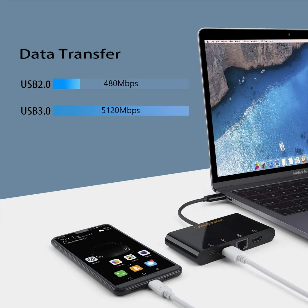 Related Product for USB-C Adapter USB-C To HDMI 4K+ USB 3.0+ RJ45 Gigabit Ethernet+ USB-C Female Data& Charging Hub Ada