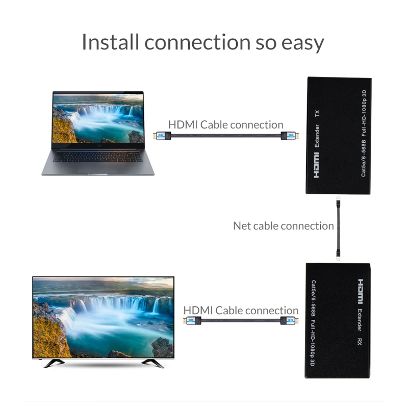 Related Product for Unnlink 60M HDMI Extender FHD 1080P@60Hz CAT5E/6 TCP Network LAN RJ45 Cable Ethernet Extension for