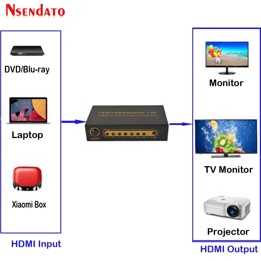 Related Product for 1 In 2 Out 4k HDMI Adapter Splitter 1X2 4Kx2K 60Hz HDMI Switcher Scaler Down Converter For DTS Dolb