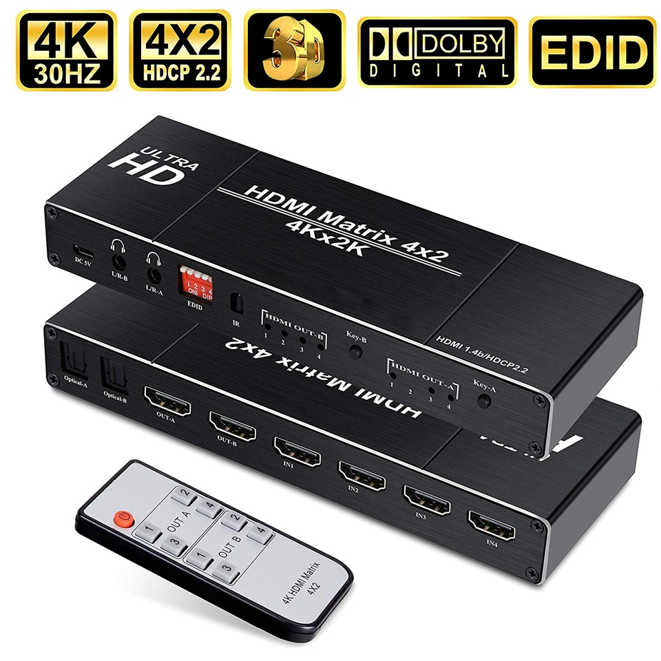 Best Offer of 2020 4K HDMI Matrix 4x2 Switch Splitter Support HDCP 2.2 IR Remote Control HDMI Switch 4x2 Spdif 4K