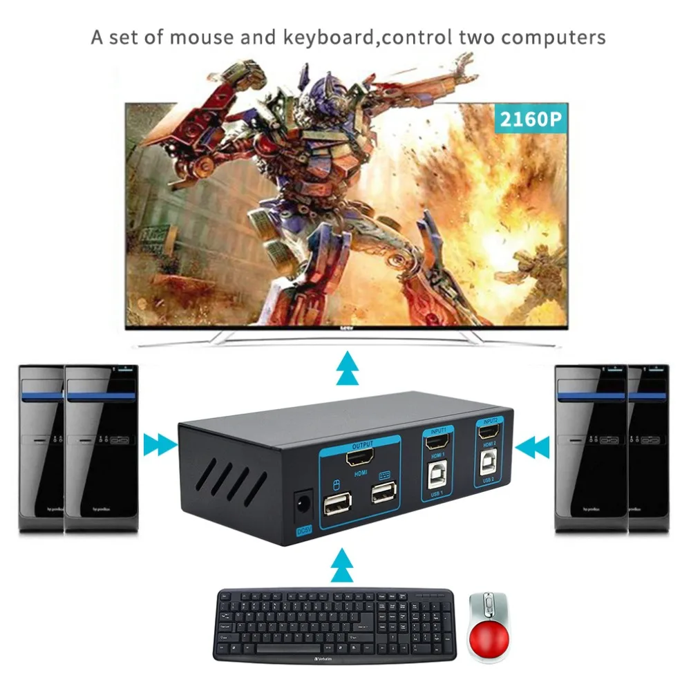 Special Price of 4K 2x1 HDMI KVM Switch 2 Port KVM Switch USB 2 In 1 Out Mouse Keyboard Switcher Support 3D UHD 4Kx2