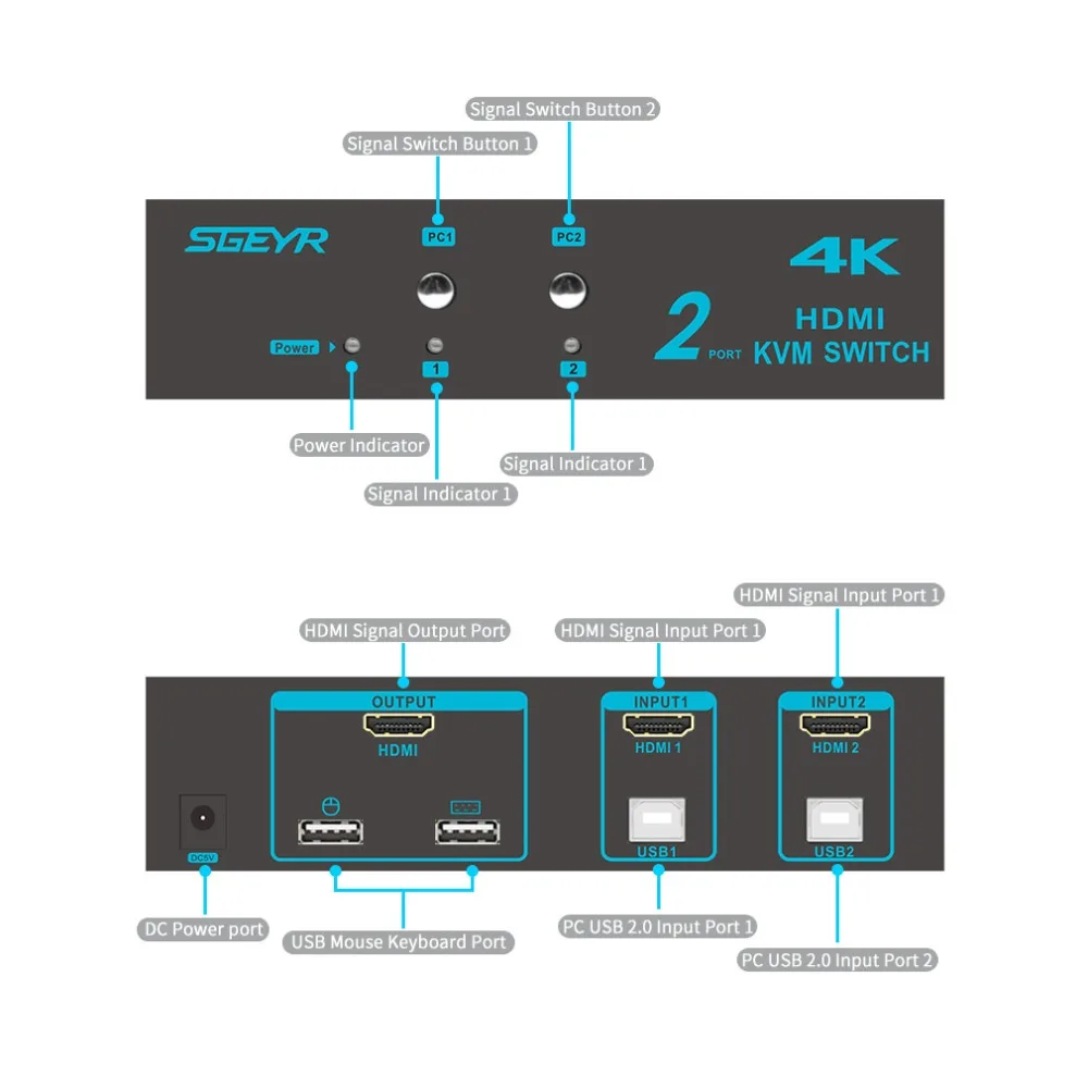 Related Product for 4K 2x1 HDMI KVM Switch 2 Port KVM Switch USB 2 In 1 Out Mouse Keyboard Switcher Support 3D UHD 4Kx2