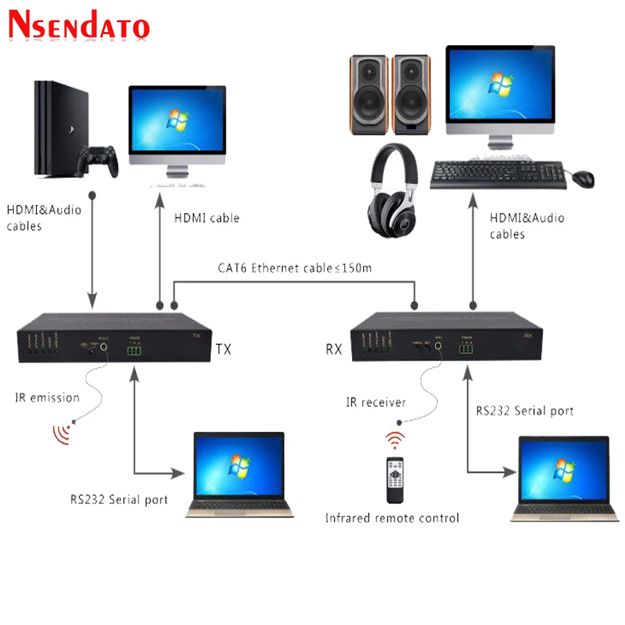 Related Product for 150M/500ft HDMI 4K KVM Over IP Extender Cat5e/Cat6 For 1080P Mouse keyboard 4K 30Hz HDMI Transmitte