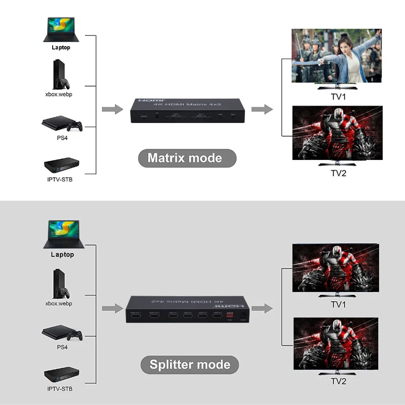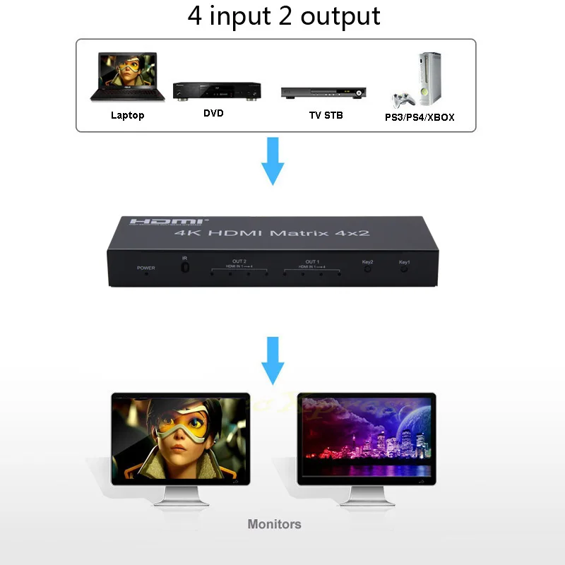 Related Product for 4K HDMI Matrix 4x2 4kx2k 3D HDCP Switcher Converter EDID Audio Extractor SPDIF Toslink Switch Split