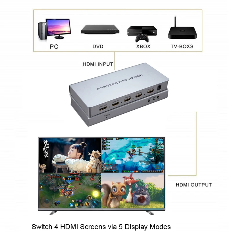 Offer HDMI 4x1 Quad Multiviewer HDMI Switcher 4 In 1 Out 1080P PIP Picture in Picture Seamless Switch 5 Models Game Monitor etc. MustGet 80% OFF, VALID UNTIL TOMORROW