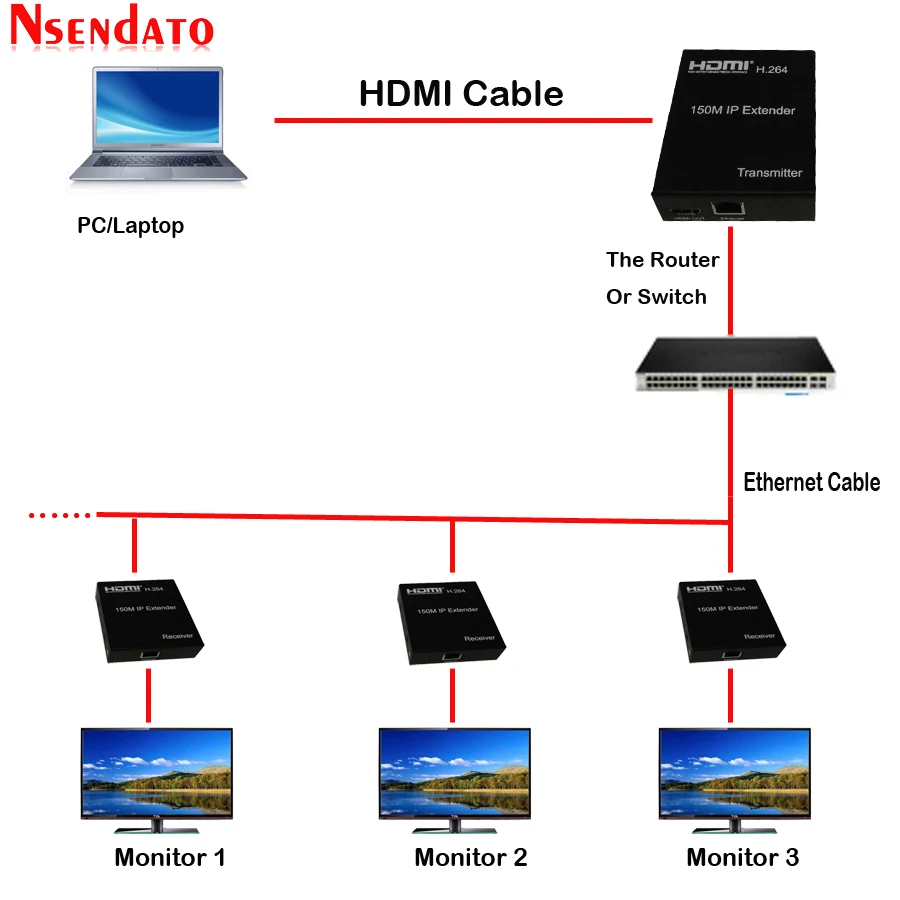 Related Product for 150m HDMI Extender over IP Cat5e/Cat6 With IR Romote HDMI H.264 Transmitter Receiver Network Extens