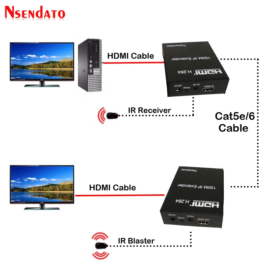 150m HDMI IR Extender over IP Cat5e/Cat6 by Rj45 HDMI H.264 Transmitter Receiver LAN Network Extensor Extender For HDTV DVD PS3